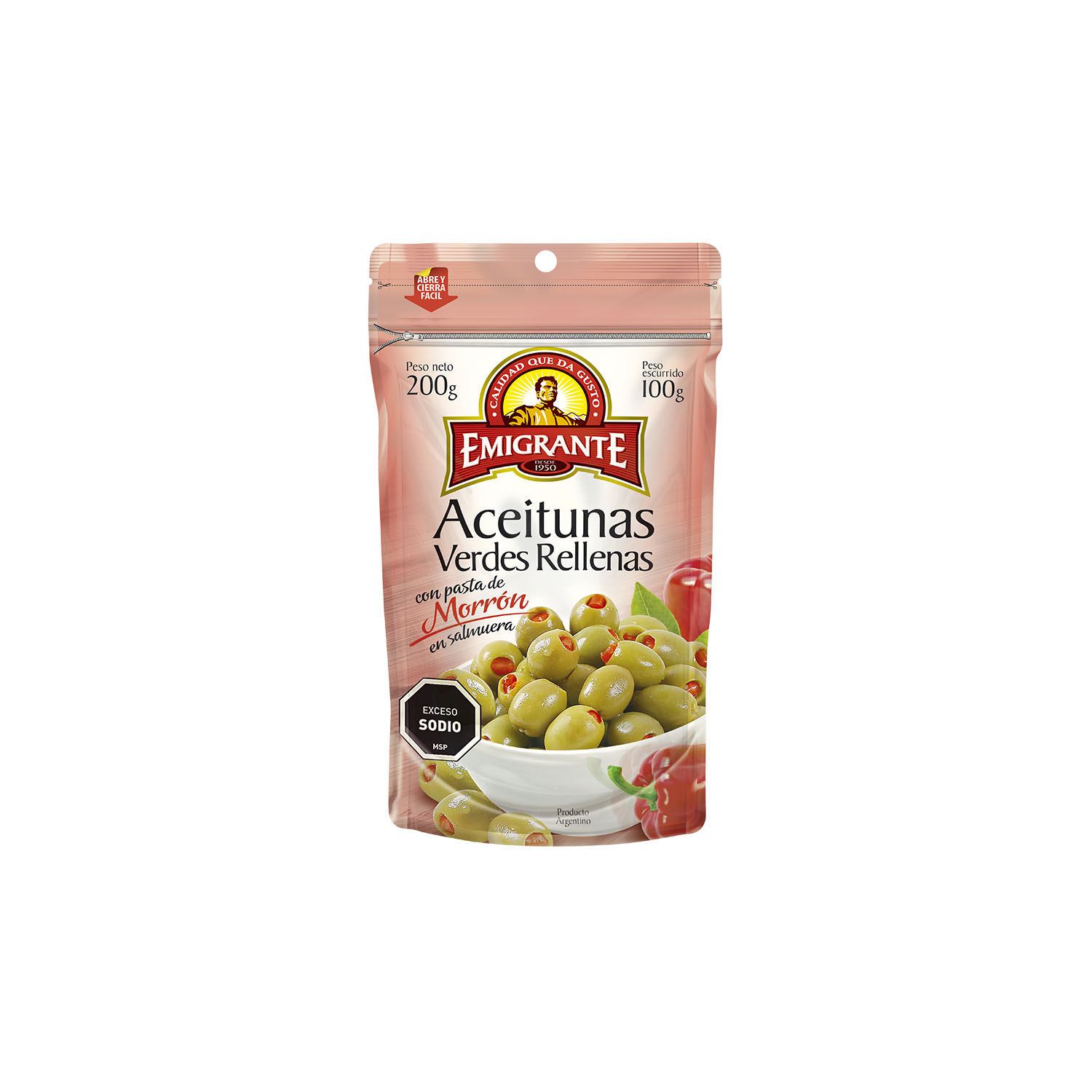 ACEITUNAS VERDES CON MORRON EMIGRANTE 200/100G